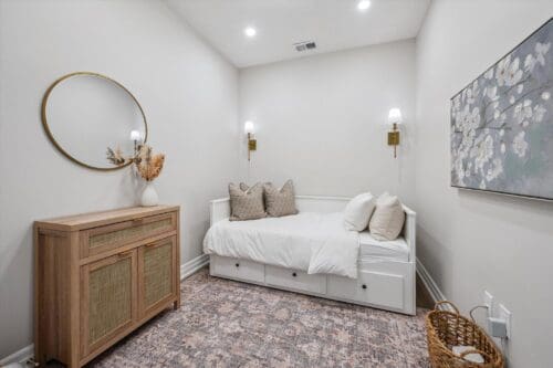 Elegant French doors reveal the versatile den—ideal as a home office, guest room, or creative studio. Thoughtful storage solutions include a massive walk-in closet in the entryway and a large pantry off the dining area, keeping everything organized and within reach.