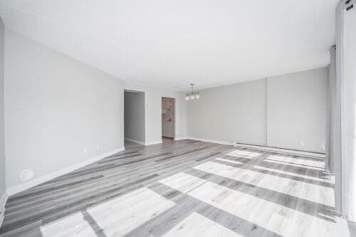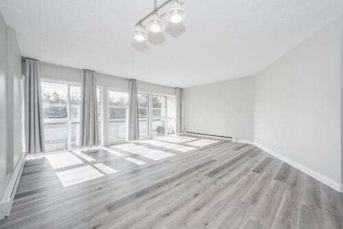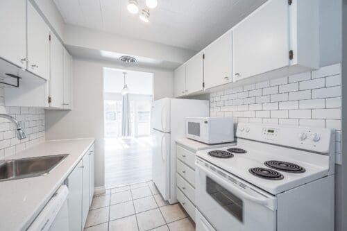 Upon entering, you’ll notice the kitchen boasting fresh white cabinetry, ample counter space and subway tile backsplash. The expansive living/dining room offers laminate floors and a wall of windows, allowing the room to be drenched in natural light. The sliding doors lead to your large balcony, the perfect place to relax and unwind after a long day.