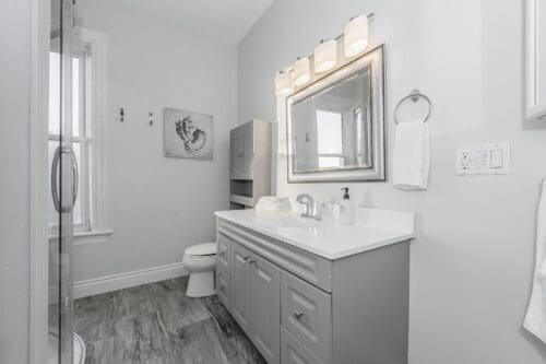 Upstairs, you’ll find three spacious bedrooms, all with hardwood floors, high baseboards, and large windows that invite abundant natural light. The modern 3-piece bathroom features a sleek vanity and convenient stackable laundry. With room to add a fourth bedroom and zoning that allows for future possibilities, this home offers incredible flexibility.