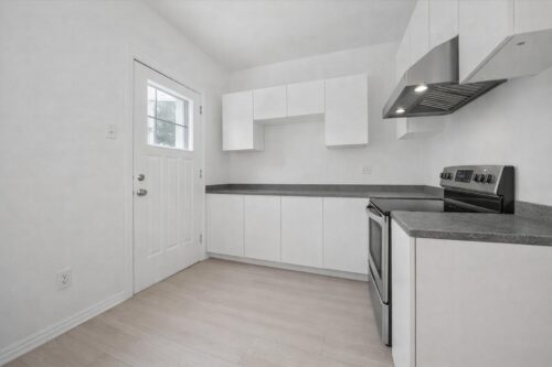 The main floor features a bright, open living and dining area with brand new luxury vinyl plank flooring, high baseboards, and large windows that fill the space with natural light. The updated kitchen offers fresh white cabinetry, newer stainless steel appliances, and ample counter and prep space. From here, step out to your private back deck, the perfect spot to BBQ, entertain friends, or simply relax and unwind. The fully fenced backyard adds both privacy and functionality. Completing this level is a spacious main-floor bedroom featuring a large window that fills the room with natural light.