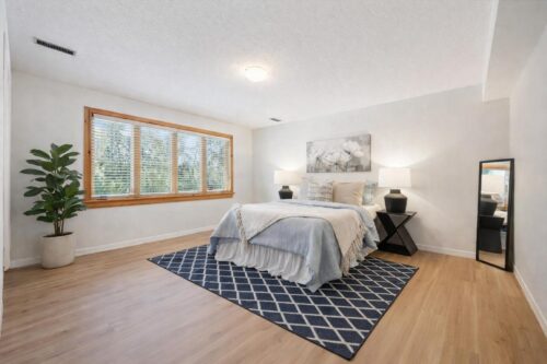 The walkout lower level offers three generously sized bedrooms, each with lovely views through oversized windows. Thanks to the full walkout design, these rooms feel bright and airy—far from a typical basement. Two of the bedrooms feature brand-new luxury vinyl plank flooring. This level also includes a renovated bathroom with a large vanity and a shower-tub combination, along with a spacious storage room. This versatile layout is perfect for large or multi-generational families, offering flexibility and a separate entrance.