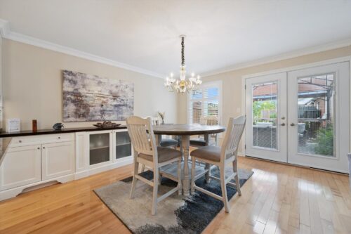 Curb appeal is undeniable, with an interlock driveway, inviting front porch, manicured gardens and an attached 2-car garage. Inside, the open-concept layout is instantly impressive, featuring cathedral ceilings, arched entryways, sun-filled windows, including a skylight, and a seamless flow from the great room to the dining area, accented by hardwood floors. In the dining area, a built-in buffet cabinet/espresso bar provides ample storage, blending functionality with elegance. Garden doors offer direct access to the back deck, creating effortless indoor-outdoor flow—perfect for entertaining or enjoying peaceful mornings in the sun.