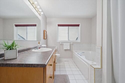 Upstairs, the primary suite impresses with soaring vaulted ceilings, a large window, and ample closet space. The 4-piece cheater ensuite features a shower and separate jacuzzi tub. Two additional generously sized bedrooms complete the upper level.