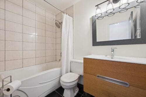 You’ll also find a stylish four-piece bathroom, offering a shower/tub combo, as well as a full-size in-suite laundry room with additional storage. Outside, a serene private courtyard invites you to barbecue, sip a drink, or simply unwind.