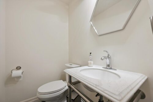 The heart of the home is a beautifully renovated chef‑inspired kitchen featuring quartz countertops, stainless steel appliances, a subway‑tile backsplash, and a generous centre island—ideal for both casual breakfasts and entertaining friends. A convenient main-floor powder room is tucked away for guests, along with smartly designed under-stair storage – perfect for seasonal items or everyday organisation.