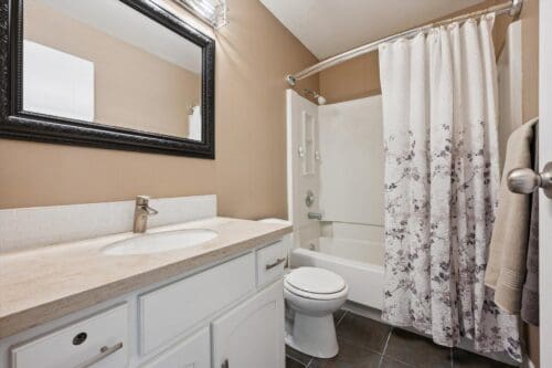The kitchen is clean and modern, featuring crisp white cabinetry, quartz countertops, a classic subway tile backsplash, and a suite of brand-new stainless steel appliances. Just off the kitchen, the dining area offers a comfortable space for morning coffees or hosting friends. A stylish 2-piece powder room is also conveniently located on this level for guests.