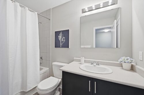 Upstairs, you’ll find two well-proportioned bedrooms, including a primary suite with a walk-in closet and convenient cheater-ensuite access to a 4-piece bathroom featuring a tiled shower/tub combination.