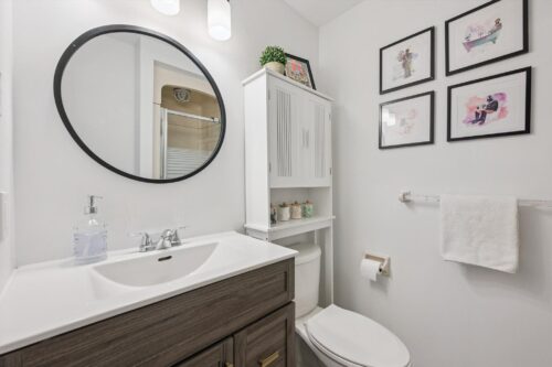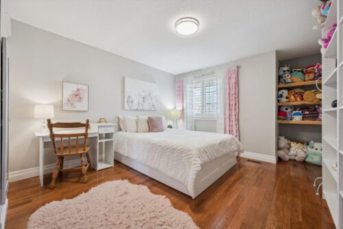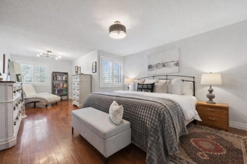 Upstairs, the spacious primary suite feels like a retreat, featuring hardwood floors, multiple large windows and a massive walk-in closet. A versatile nook within the room offers the perfect space for a dressing area, home office, or reading corner. The ensuite is tastefully updated with a stylish vanity.