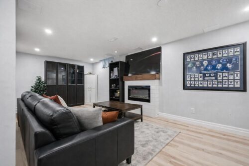 The finished lower level offers incredible versatility, featuring a spacious recreation area highlighted by a stylish shiplap fireplace with a rustic wood mantel, creating a warm, elevated feel. An updated 3 pc bathroom with a modern vanity and a dedicated laundry room completes this level.