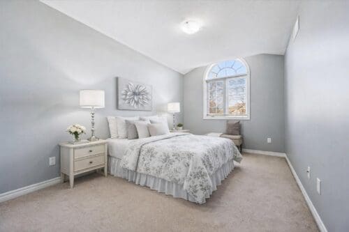 There are two additional bedrooms, both with double closets, including one with a beautiful arched window. A 4-piece bathroom with a large vanity provides ample storage and counter space. Second-floor laundry adds everyday convenience.