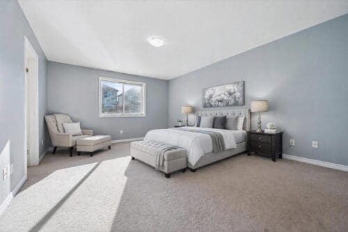 Upstairs, you’ll find a spacious primary bedroom with a large window, double closet, plus a walk-in closet; storage is never a concern here. The ensuite bathroom features a separate shower and deep soaker tub, perfect for relaxing at the end of the day.