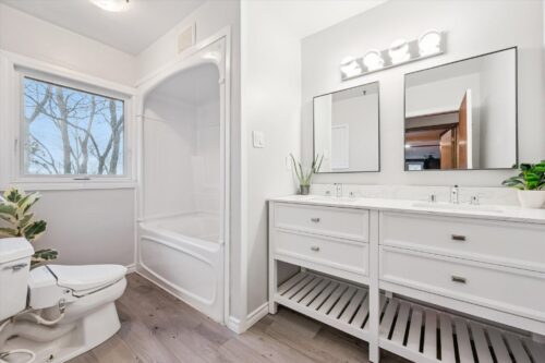 There’s another generously sized bedroom upstairs, as well as a modern 5-piece bathroom with dual sinks and a tub/shower combo. The finished basement adds even more value with a 4th bedroom, 3-piece bathroom, a sauna, and plenty of storage.