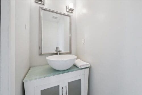 The main floor also features a separate wing, ideal for in-laws or guests seeking independence. Boasting high ceilings, a spacious living room with soaring ceilings, a bedroom setup, its own 4-piece bath, laundry, and sliding patio doors, this private suite seamlessly opens to your backyard haven. A stylish powder room, gleaming hardwood floors round out this inviting main level.