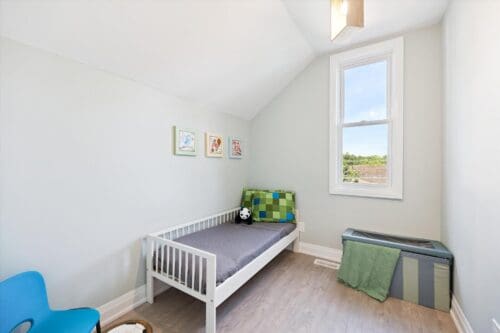 Upstairs, you’ll find three spacious bedrooms, including a generous primary suite with dual windows, along with a contemporary four-piece bathroom finished with porcelain tile flooring and a tiled tub and shower combination.