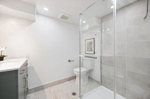 The basement offers additional living space, complete with a finished three-piece bathroom featuring heated marble floors, a laundry area, and a bright recreation room that can be tailored to your needs.