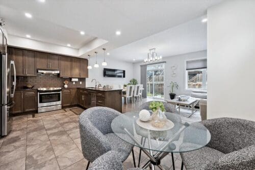 From the moment you arrive, you’ll be captivated by the curb appeal—charming front porch overlooking the park, a deep driveway with space for three vehicles, and an attached garage for added convenience. Step inside and discover a spacious, light-filled open-concept main floor with pot lights throughout, hardwood floors, and expansive windows that draw the outdoors in. The great room offers an ideal space to relax or entertain, flowing seamlessly into a generous eat-in kitchen featuring marble countertops, stainless steel appliances including a new dishwasher and microwave, a large island, and elegant pendant lighting.