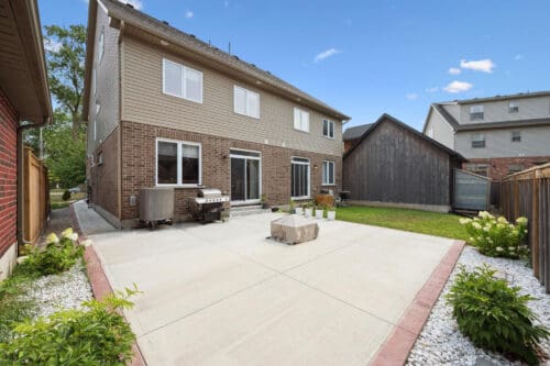 Massive concrete patio and pathway, installed in 2023, provide the perfect space to relax after a long day or entertain guests, all surrounded by lovely gardens and partially fenced for added privacy.