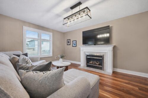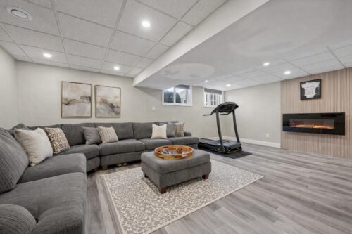 The finished basement provides fantastic additional living space with two large windows, ample pot lighting, and a modern fireplace feature wall — a perfect spot for family movie nights, entertaining, or a kids’ play area. A 2-piece bathroom adds extra convenience.
